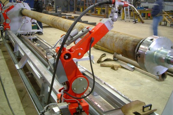 Αυτόματο μηχάνημα συγκόλλησης κυλινδρικών δοχείων όπως ηλιακά, θερμοσίφωνα, αεροφυλάκια, φίλτρα άρδευσης κ.τ.λ. Η μηχανή εξασφαλίζει ταχύτητα παραγωγής, ελαχιστοποιεί τo σφάλμα στη συγκόλληση και μειώνει το κόστος παραγωγής.
