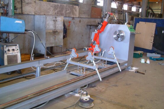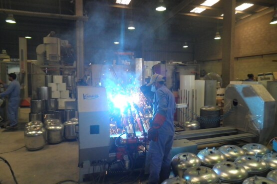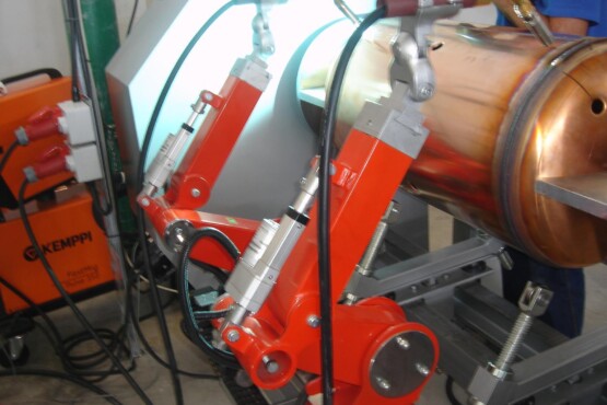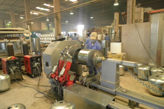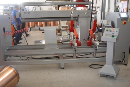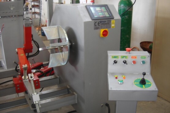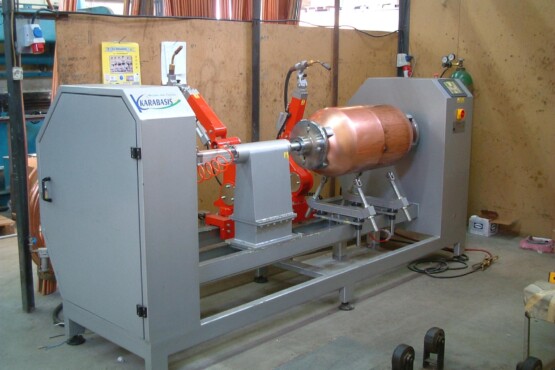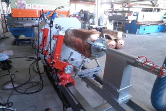 Αυτόματο μηχάνημα συγκόλλησης κυλινδρικών δοχείων όπως ηλιακά, θερμοσίφωνα, αεροφυλάκια, φίλτρα άρδευσης κ.τ.λ. Η μηχανή εξασφαλίζει ταχύτητα παραγωγής, ελαχιστοποιεί τo σφάλμα στη συγκόλληση και μειώνει το κόστος παραγωγής.
